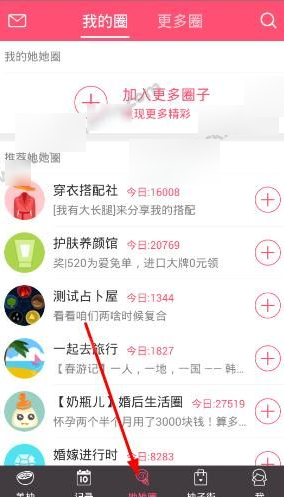 1、打开美柚app,进入她他圈,在这类有着圈子,