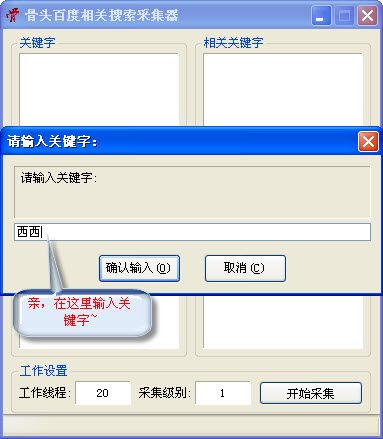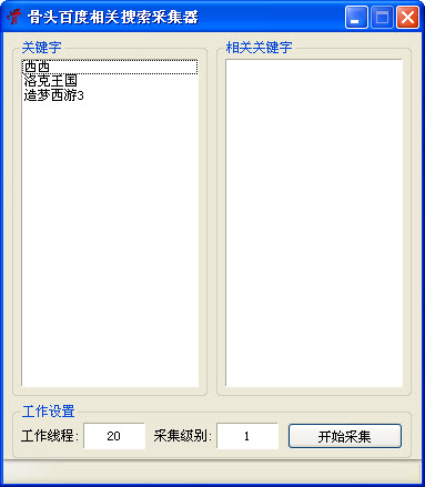 骨头百度相关搜索采集器可以在输入您的关键字以后,自动去获取百度的相关搜索,这个软件也是博客营销助手的最大帮手,如果您有需要不防试试哦.