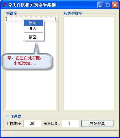 1、下载软件后,打开骨头百度相关搜索采集器.exe,
