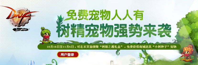 10月16日至11月6日,可在本页面领取“树精之源礼盒”,免费获得商城道具“小树种子”宠物