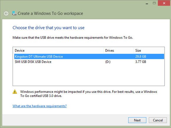 1 选择合适的优盘,开始安装Windows To Go。微软推荐使用USB 3.0 优盘,并对一些产品进行了认证。