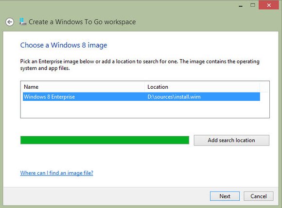 2 Windows To Go 将扫描本地驱动器,找到合适的Windows映像——或者你也可以手动连接到一个映像文件。