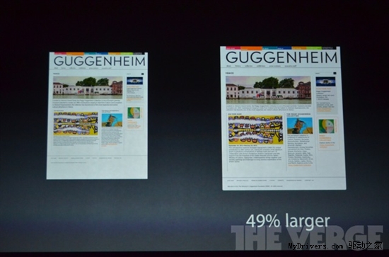 1:21 13寸RMBP仅次于15寸版,是世界上屏幕分辨率第二高的笔记本屏幕,比1080p电视屏幕分辨率高近一倍。