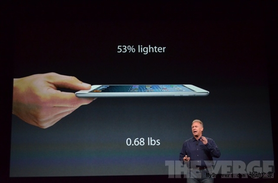 1:49 iPad mini重量0.68磅,较全尺寸版轻一半,提供黑白两色,黑色版的外观电镀工艺同iPhone 5。