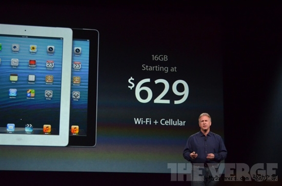 2:01 iPad mini 16GB WiFi版售价329美元,32GB版429美元,64GB版529美元。 LTE版在此基础上各加130美元。iPad 2仍继续销售,起价399美元。