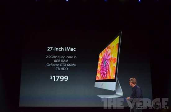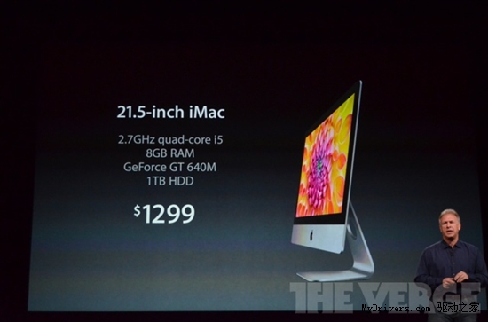 1:34 21.5寸iMac起价1299美元,2.7GHz四核i5,GeForce GT 640M,1TB HDD硬盘。27寸起价1799美元,搭载2.9GHz四核i5,8GB内存,GeForce GTX 660M,1TB硬盘。新iMac将于12月上市,同样达到各种环保标准要求。