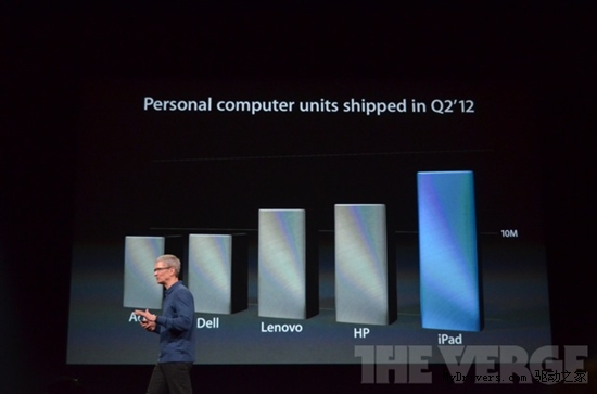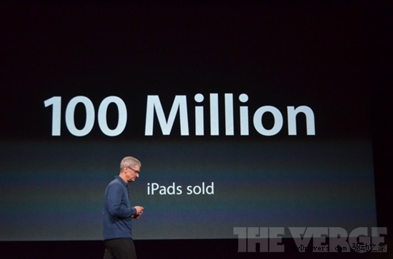 1:35 Tim Cook表示,两周前,iPad刚刚售出第1亿台,而它从发布到1亿台仅用了2年半时间