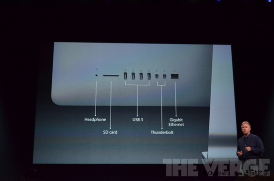 1:32 8代iMac搭载的是Ivy Bridge四核i5/i7处理器,NVIDIA Kepler核心显卡,最大32GB内存,最大768GB固态硬盘背部提供4x USB 3.0、2x Thunderbolt、SD读卡器等接口。