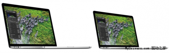 1:2413寸RMBP搭载双核Ive Bridge Core i5/i7处理器,HD Graphics 4000集成显卡,8GB内存,最大768GB固态硬盘。