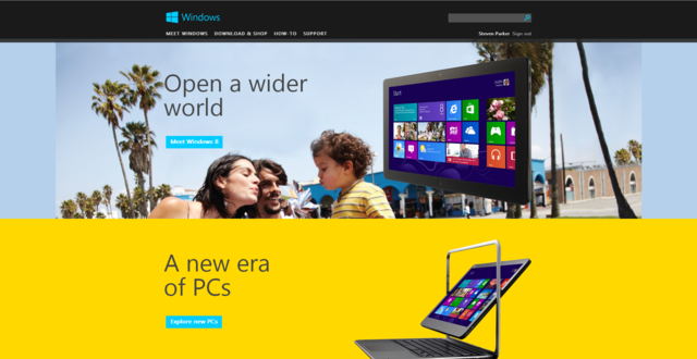 他 回顾了Windows 95到Windows 7,在那个时代,以开始菜单为中心的Windows引领了科技世界很长时间。不过,Windows 8却是一款可以改变世界的产物。Windows 8的安装量目前超过1600万,测试时间高达12.4亿小时。Windows RT为ARM架构的平板设备提供了全新的体验。