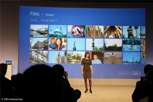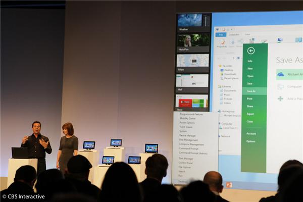 现在,Julie Lasson Green 和Mike Angiulo与Sinosky一起出现在了台上,Julie正在展示一台Windows 8平板。她说Windows 8是一款非常有意思的系统。