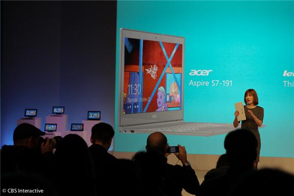 现场展示了来自联想的ThinkPad Tablet 2,内置英特尔Atom芯片。同时还有Acer Aspire S7-191笔记本,它主要面向企业市场。Mike谈到Windows 8设备正朝着更薄更轻的规模发展
