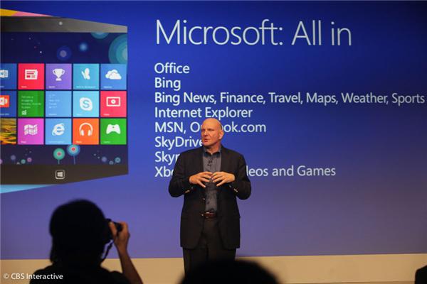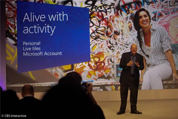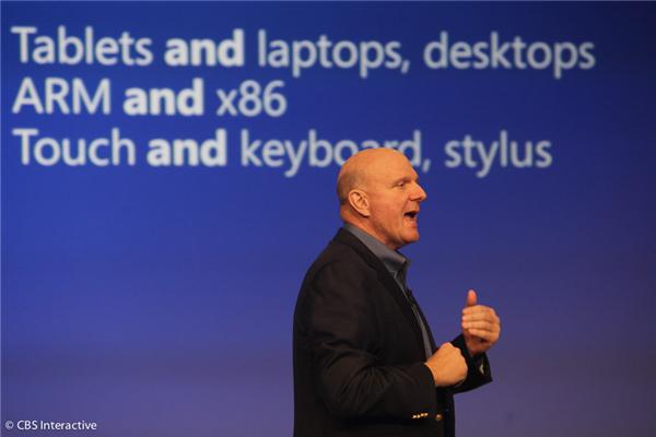 CEO史蒂夫鲍尔默来到了台上,他说:我很兴奋和激动。我们对于重塑Windows产品,带领大家进入新的领域感到非常自豪。