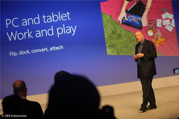 全新的设计方案,针对PC和平板,有些键盘可拆卸,有些可折叠,合作伙伴都在各显神通。鲍尔默谈到了PC和平板是怎样以最佳状态融为一体的。