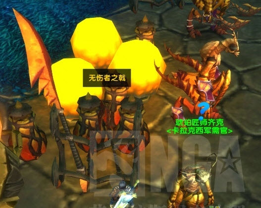 3.在卡拉克西维斯仔细找了半天没有找到NPC,最后在军需官附近找到了无伤者之戟,点击之后获得buff“铁皮螳螂妖”