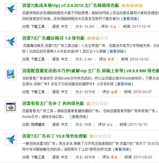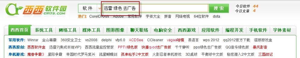 如:迅雷7绿色去广告版,亲们只需要输入关键字“迅雷 绿色 广告”西西网站就会帮你刷选出你需要的!
