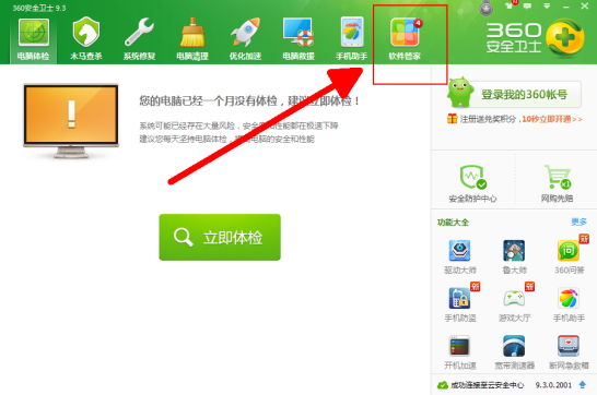 打开360安全卫士,选择“软件管家”,出现软件管家的活动框界面。