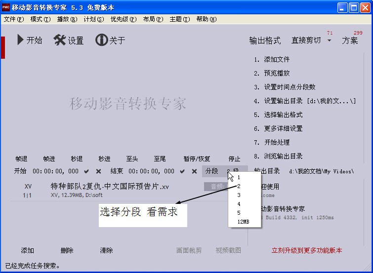 如果没有对视频有特殊的需求,那么我们就可以对视频进行分割了~点击左上开始处理