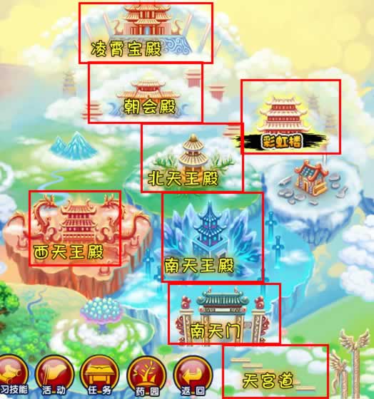 接受任务后,杨戬会随机出现在以下地点,同学们可以直接从大地图中进入哦!