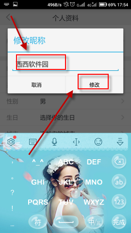 4.输入你想修改成为的名称,西西小编这里就以“西西软件园”为例,输入之后,点击“修改”即可