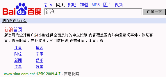 图:搜索“新浪”,百度给予的Sitelinks展示