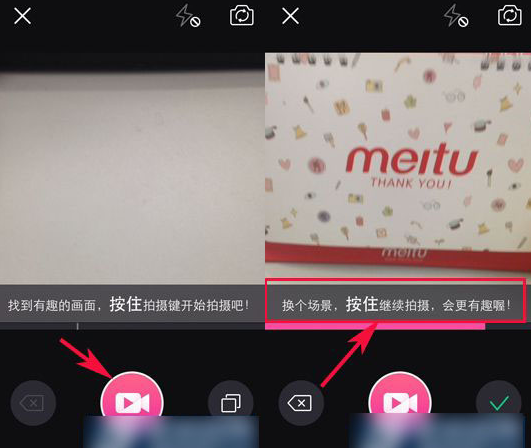 2)找到有趣的画面,按住即为拍摄,松开即为停止拍摄。大家可以录制完一段后送开手,等待下一个场景再继续拍。(如下图所示)