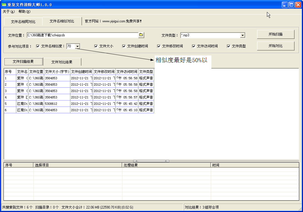 最后一点很重要哈 对比文件名中相同字符的数量及其他选中的文件属性是否相同。速度较慢,如果文件较多,机器不够给力可能会假死,慎用!