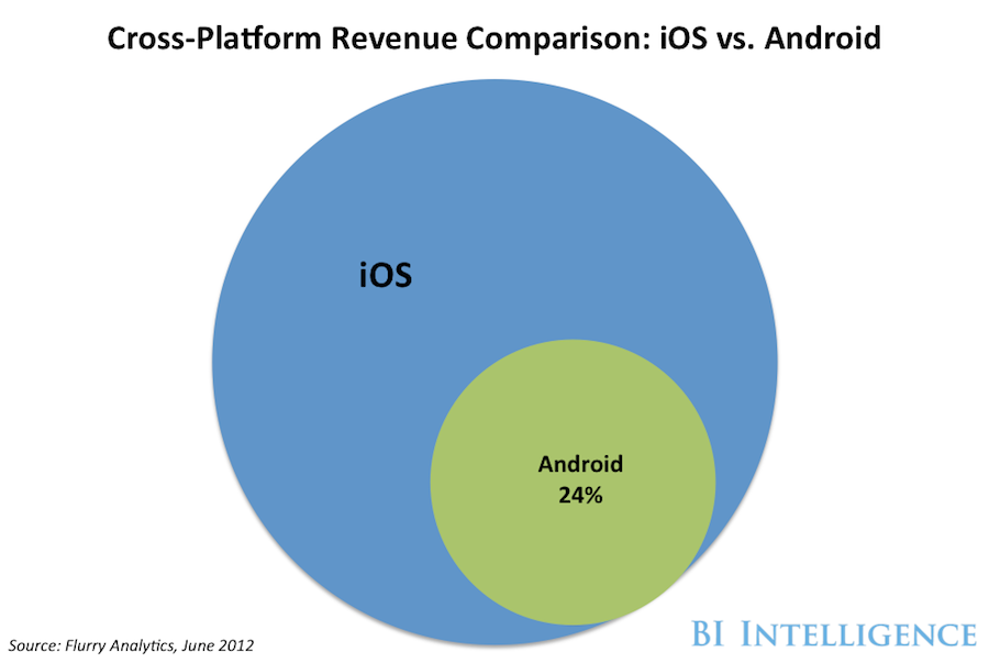 Android的最后一个麻烦在于:开发者为苹果平台开发应用程序赚取的收入的收入远高于他们为Android平台开发的。这是毋庸置疑的,而且迄今为止这一直是苹果巨大的竞争优势的基础。