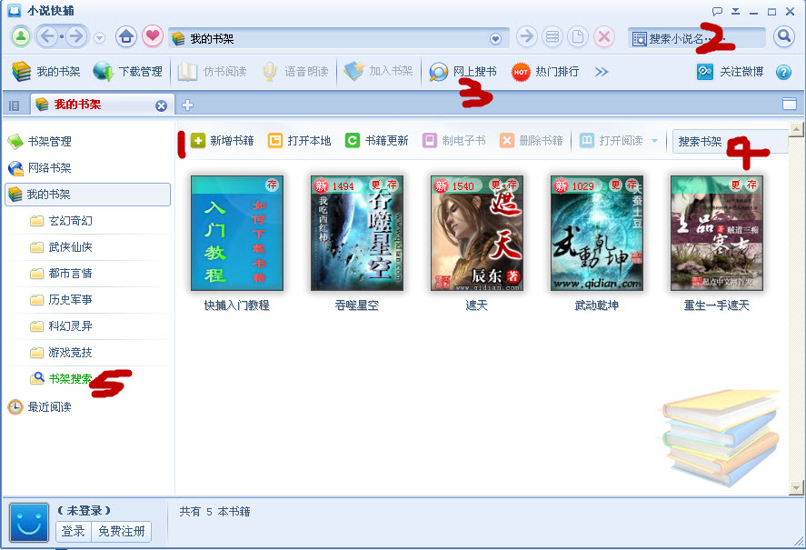 3.我们可以排除掉4和5 书架搜索,因为此时书架只有五本书。西西选择了1,出现了三种选择。对于我们来说,想要查找自己喜欢的小说最直接的方式就是按书名查找。