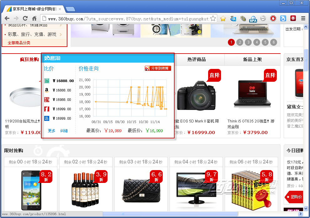 先安装浏览器,然后再装如意淘,进入某东网购平台。把鼠标移动到需要比价的商品图片上,看,价格列表就出来了。