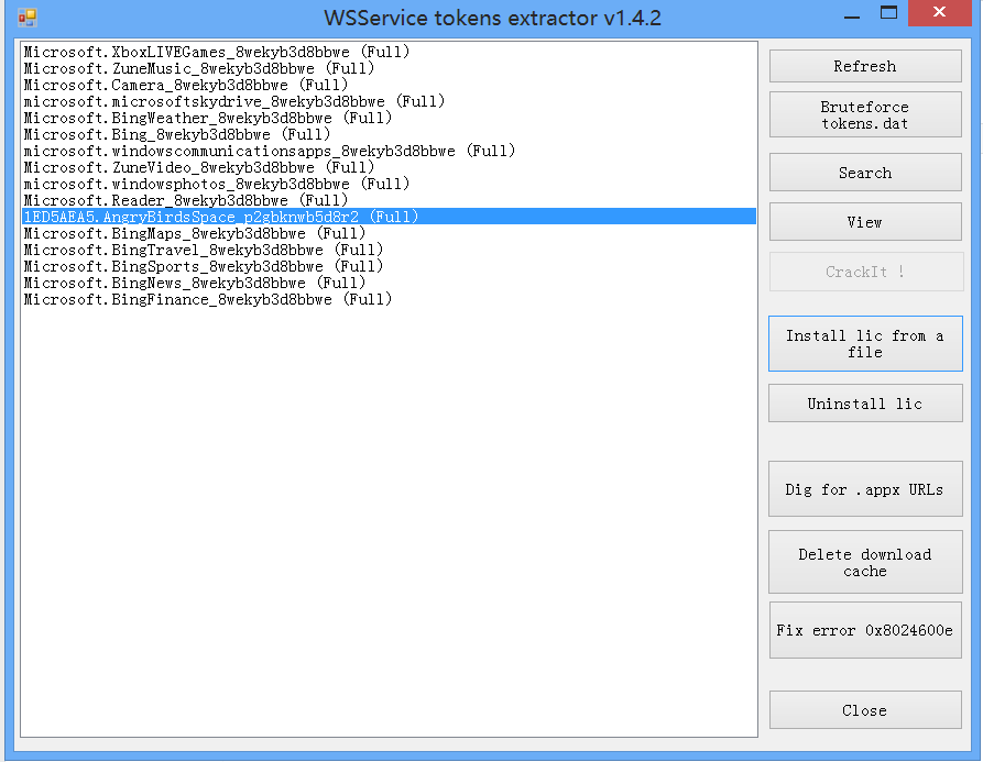 4、安装成功后就可以用wscrack_anycpu下面的TokensExtractor进行破解了,打开TokensExtractor.exe找到相应的应用进行破解。