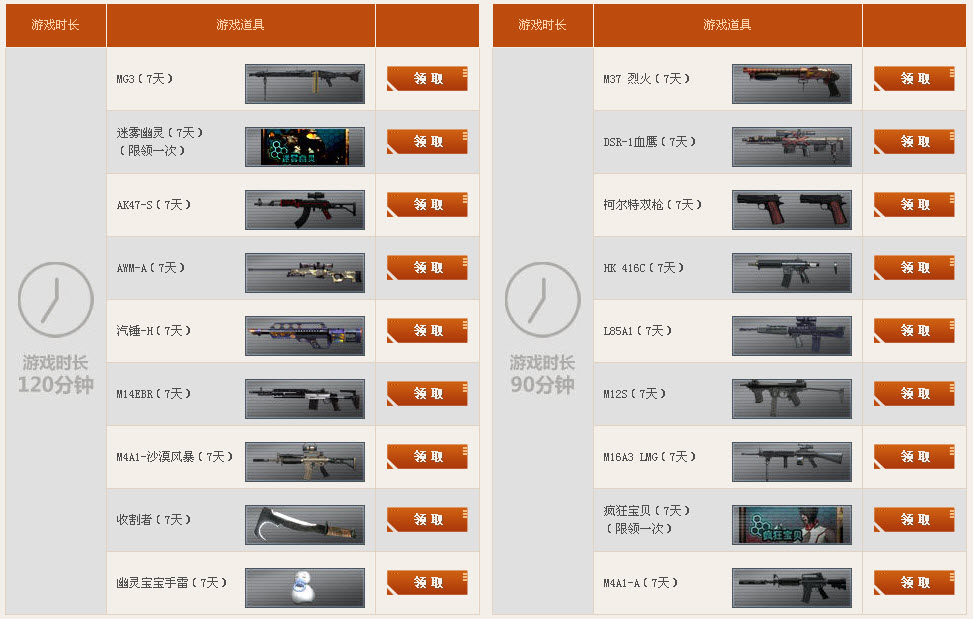 4.前一天的游戏内时长,第二天10点之后可以查询并进行道具领取。