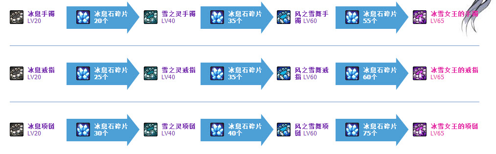 ③ 活动中获得的饰品可以用【冰息石碎片】道具生产出更高级的饰品。