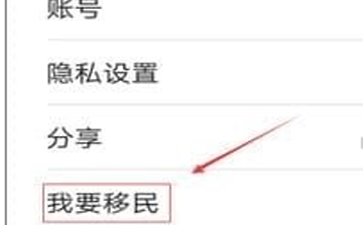 4、进入设置页面以后,我们就可以看到“我要移民”了,我们点击我要移民。