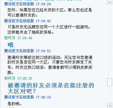 6、被邀请的玩家只有在自己绑定的大区的游戏账号达到22级,邀请你的玩家才能领取皮肤奖励。