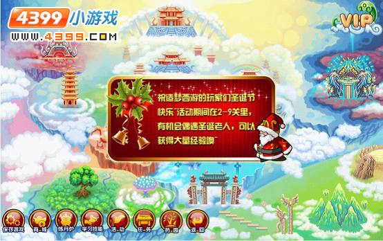 祝造梦西游在2-9游的玩家们圣诞节快乐,圣诞节期间,同学们在2-9关里。有机会遇到圣诞老人,获得大量奖励呢。