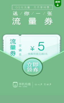 用户领取5元流量券,进行充值流量直接抵扣金额,满300M可用,所有流量券自领取开始7天内有效,使用流量券充值的流量,即时生效,月底失效。