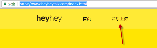 用户进入heyhey官方网站:https://www.heyheytalk.com/index.html,点击上传音乐