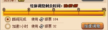 可以使用银票瞬间完成或者缩短经脉调息时间,调息时间越长,单位时间所消耗的银票越低。