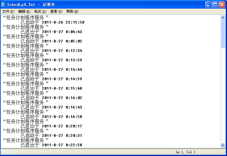在电脑的开始菜单中打开“运行”,输入 C:\WINDOWS\schedlgu.txt 回车后即可详细查看到随系统自动启动的任务计划服务程序的启动/退出时间(分别对应电脑的开机/关机时间)。如果这些时间段内不是你开的电脑,则一定是别人有用过。