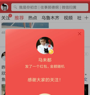 然后点击红包图标,点击后就关注了这个账号。一般都是名人,关注后就后有红包展现,有点像微信的红包!