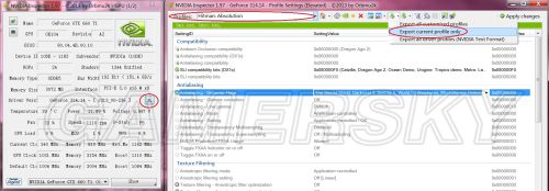 第三步:打开Nvidia Inspector,分别导出hitman absolution和tomb raider(2013)的nip配置文件。详细操作见图。