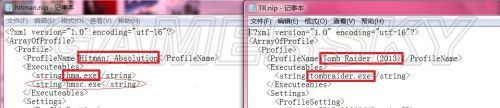 第四步:用记事本打开两个游戏nip配置文档,然后把杀手5的配置文档内的名称改成古墓9的。