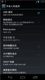 部分4.0以上版本的ROM需要打开ROOT授权,具体打开方式是: