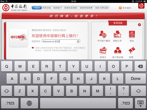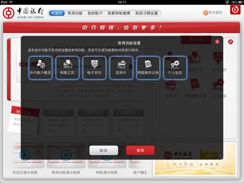 中行网银iPad客户端还有更多亮点等您发现!快点开始体验吧!