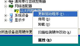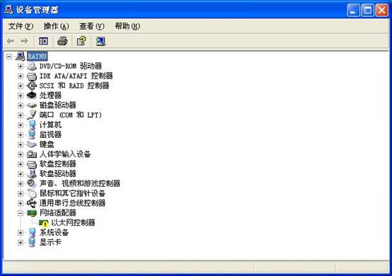 如图,网卡是没有安装驱动程序的设备,其前面会有感叹号“!”标示。