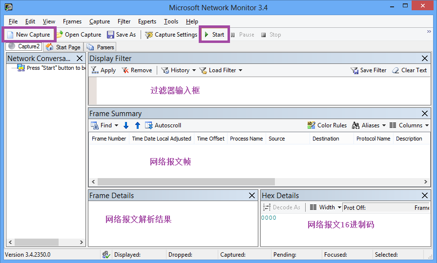 Pause和Stop按钮分别用来暂停或停止抓包。