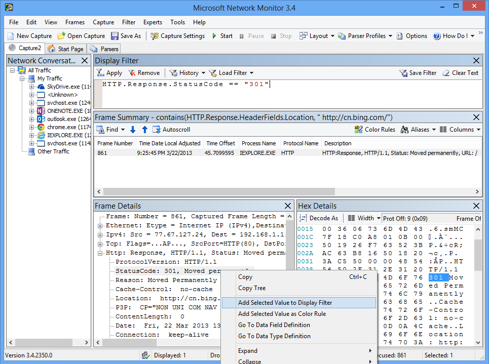 contains(HTTP.Response.HeaderFields.Location, " http://cn.bing.com/") - 过滤Response Location header包含http://cn.bing.com/的帧