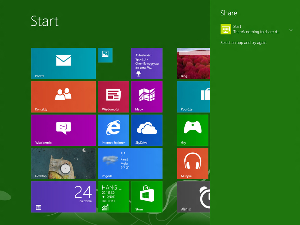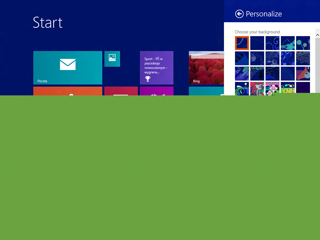 在开始屏幕的右边栏上我们能够呼出色域的选项,相比较Windows 8系统可以看到在色彩选择方面更加的细腻,用户能够挑选更加钟意的颜色。