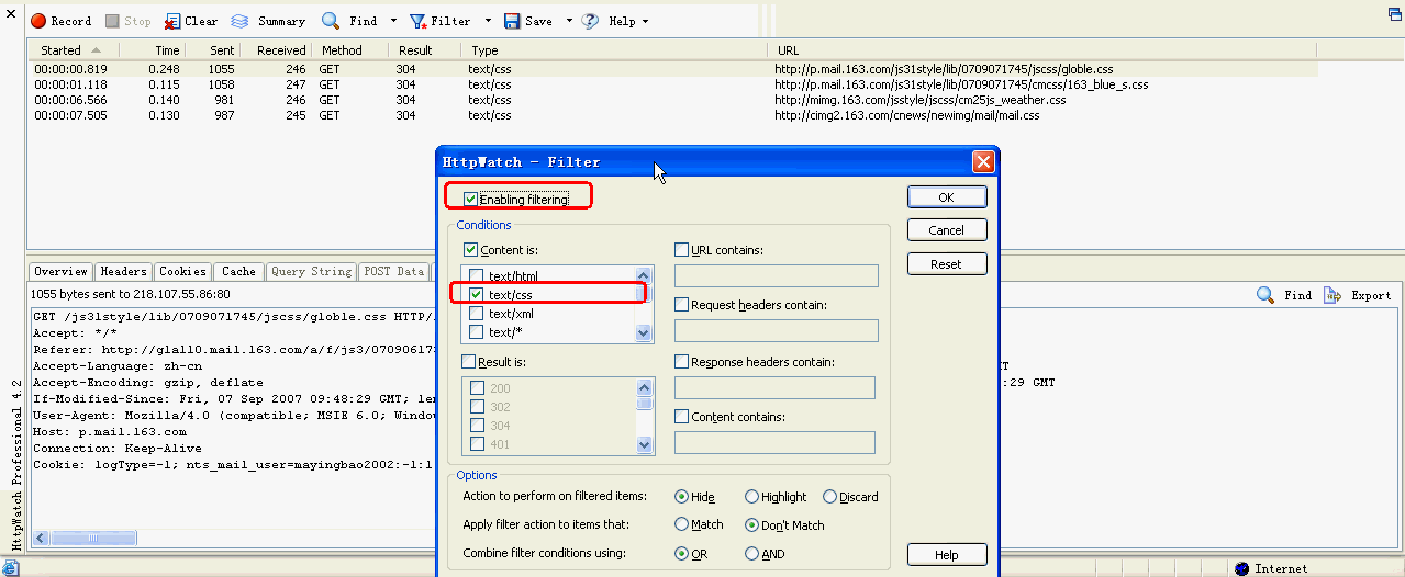 以下用登录我的邮箱mail.163.com例子来展示Httpwatch:
